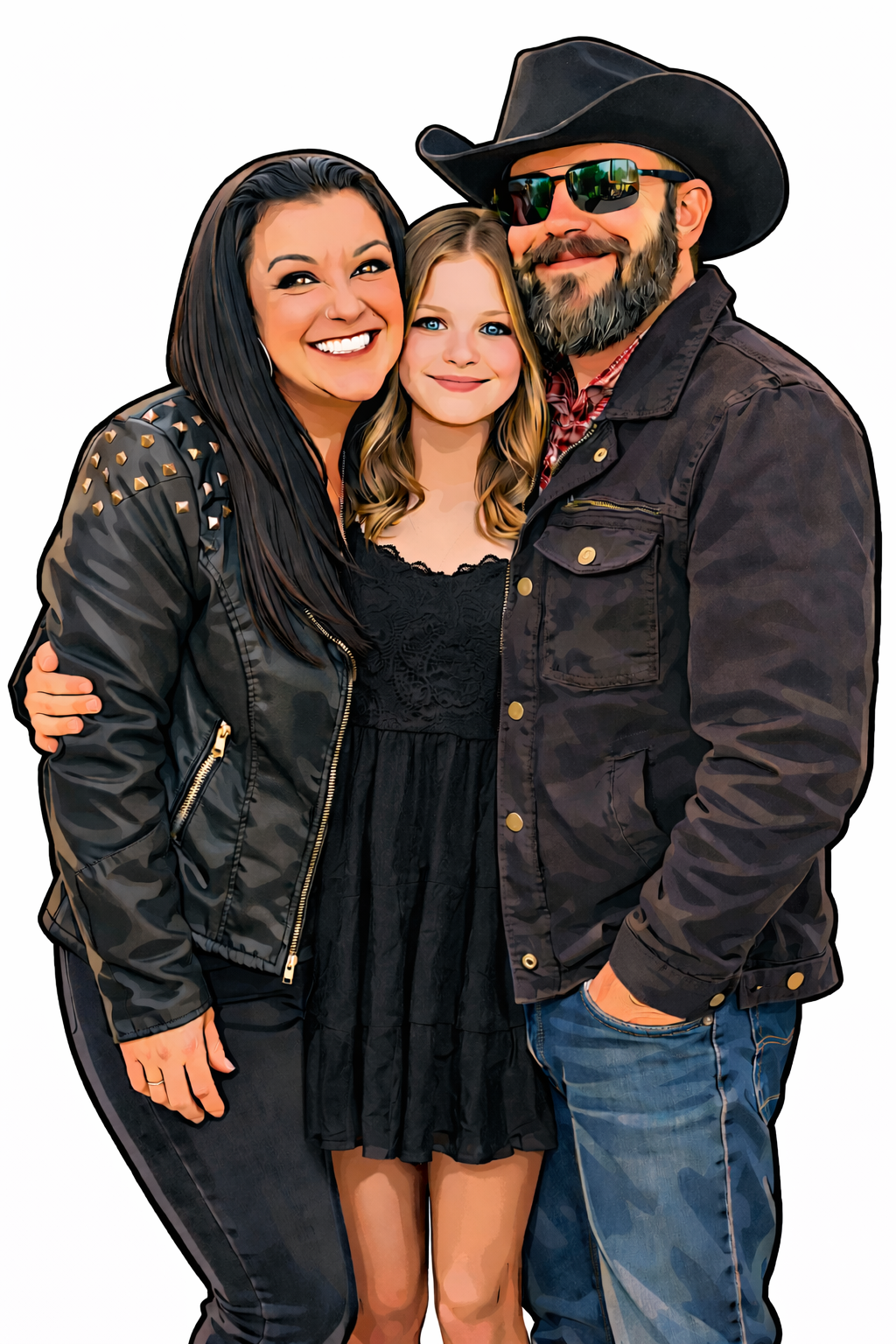 We’re a husband-and-wife team building handcrafted leather goods the old school way, with our kid right there along side us. This isn’t a side hustle or a factory brand- it’s a family operation where everyone has had a hand in making Buck Wild Leather happen.
